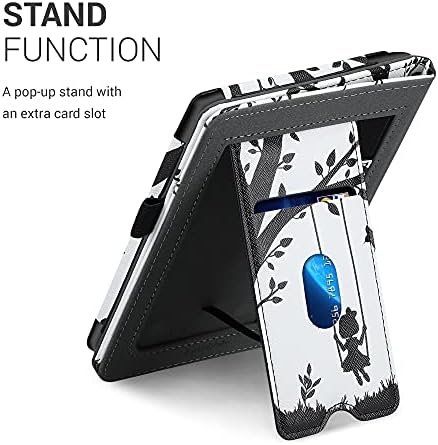 kwmobile Case Compatible with Kobo Clara HD – Case PU Leather Cover with Magnet Closure, Stand, Strap, Card Slot – Girl Tree Swing Black/White