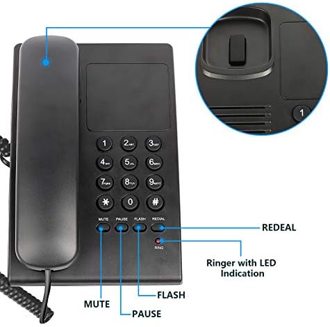 Landline Telephone for Home, No Need Battery, Wall-Mountable, One Key Redial, Flash, Mute, Easy to Operate, Space Saving, Load Ring Tone, Desktop Phone, Black