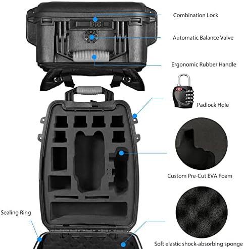 【2-in-1 Functional Design】Equipped with a password lock (Password can be changed), added 2 keyholes can be padlock. Equipped with rubber handles & balance valve. DJI Mavic 3 Cine drone hard case with two action latches, easy to open or close. Use high-quality zipper to connect the padded back panel and the hard shell, reinforced by screws, innovative and unique combination design.