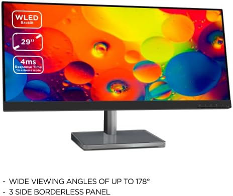 Lenovo L29w-30 29 Inch UltraWide FHD Gaming Monitor (IPS, 90Hz, 4ms, HDMI, DP, FreeSync with Eyesafe) – Height Adjust, Tilt, Swivel & Pivot, Raven Black