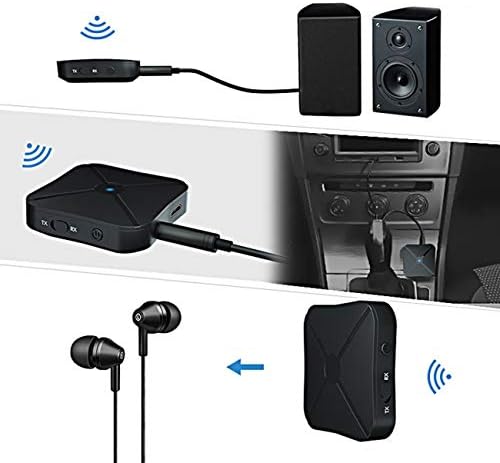 Broad Compatibility: With the included 3.5mm cable and 3.5mm to 2RCA cable, this Receiver Transmitter adapter can widely be used on your computer, laptop, home stereo system, headphone, smartphone, Mp3 player, CD player, etc. Suitable for single Bluetooth signal device, not fit with two Bluetooth signal device earbuds like airpods.