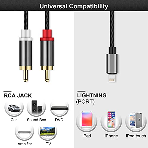 Lightning to 2-Male RCA cable, RCA to IOS Adapter Audio Stereo Aux Cord Compatible with iPhone 12 11 X XR XS MAX 8 7 S Plus Pad Pro Mini Air Pod Touch for Home Car Speakers Amplifier (1M/3.3ft)
