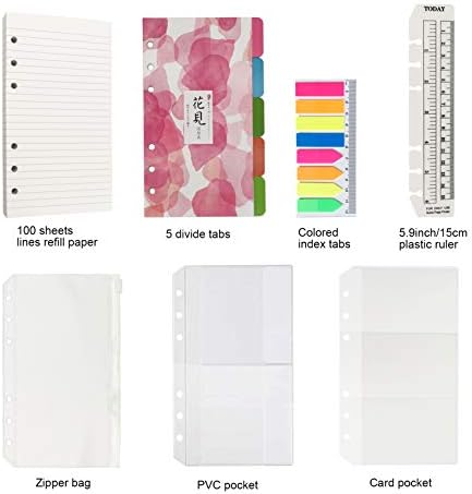 Lined Refill Paper Kit for Filofax Personal Size Planner/Binder, 100 Ruled Sheets, 5 Dividers + 3 PVC Pockets + 160 Colored Index Tabs + 1 Quick Page Finder, 9.5×17.1cm