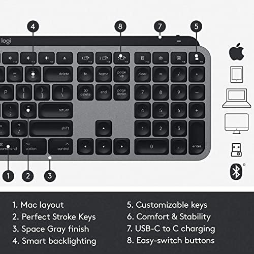 CUSTOMISABLE KEYS: MX Keys for Mac is optimised for the Apple suite of products, with a Mac layout and customisable Fn keys for a seamless workflow. Use Logi Options+ to customise your layout