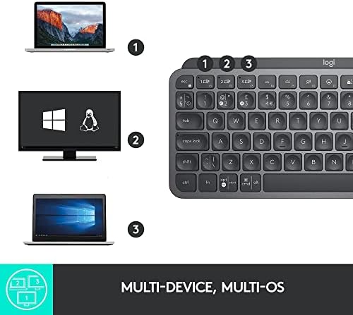 Multi-Device, Multi OS: Pair MX Keys Mini compact keyboard with up to 3 devices on nearly any operating system via Bluetooth Low Energy and switch between them seamlessly