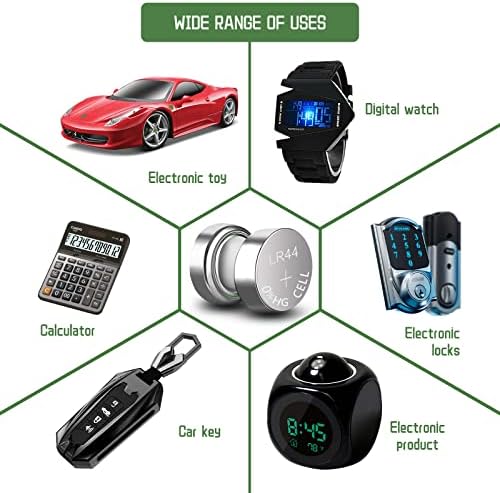 💚LR44 APPLICATION💚 LR44 batteries is one of the most commonly used button batteries. Cell batteries are required for remote control, toys, scales, car keys, remote control keys, calculators, remote controls, dog collars, kitchen scales, scales, led candles, laser pointers, e-readers, Christmas lights and other equipment.
