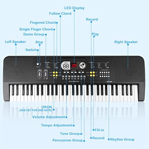 🎹【61 Keys Multiple Functions Keyboard Piano】Keyboard piano 61 Keys with with LED screen,which can show the running functions.this multifunctional keyboard piano features 61 black and white keys, 10 rhythms, 16 demos, 6 demos, 8 percussions, double speake, and are also with microphone, music stand.This piano keyboard is only powered by USB cable.