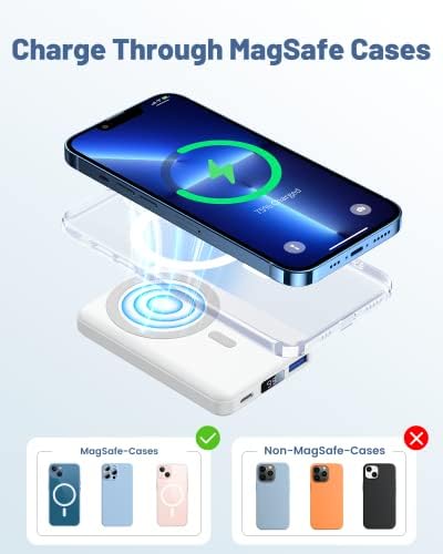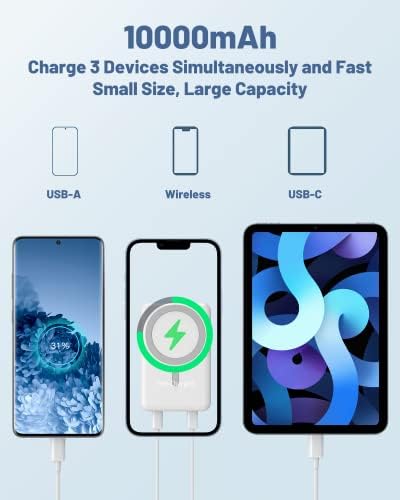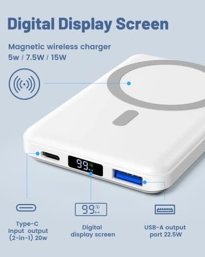 Magnetic Power Bank 10000mAh, Yiisonger 15W Wireless Fast Charging Portable Small Charger Battery Pack PD 20W & QC 22.5W Usb Type C Compatible for iphone 13/12 Series(White)
