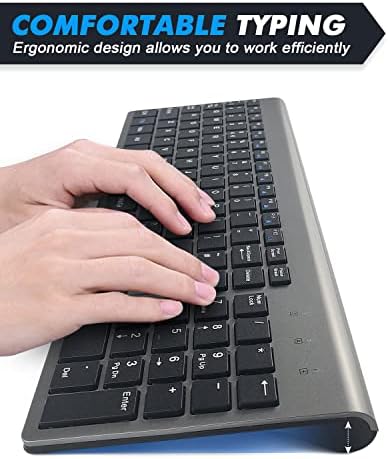 Work in Silence and Comfortably: The silent keys and buttons of both the keyboard and mouse wireless mean you won’t disturb anyone while working. A smooth typing experience for both the user and the people around you. With anti-slip feet you’ll type comfortably for hours, while the rubber finish of the wireless mouse ensures a firm grip on your work.