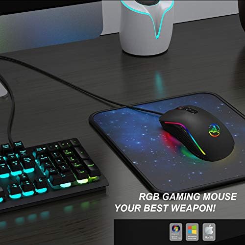 Maxesla Gaming Mouse Wired, Ergonomic Mouse High Performance, USB Wired Mouse with 7 Colors LED Backlight, Computer Mouse 4 DPI Settings Up to 3200 DPI, Plug & Play for Laptop, PC, Windows, Mac, Black