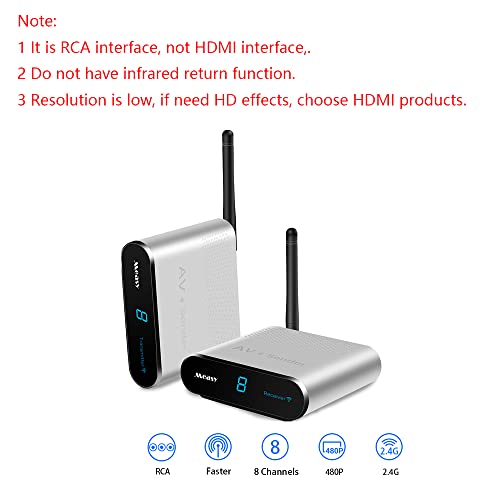 MEASY AV220 2.4GHz Wireless AV Sender Transmitter and Receivers Audio Video up to 200M / 660FT(Interface RCA, pas interface HDMI. no infrared return function.) (AV220)