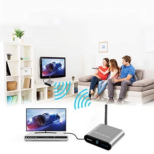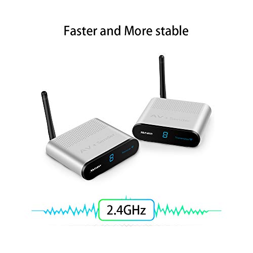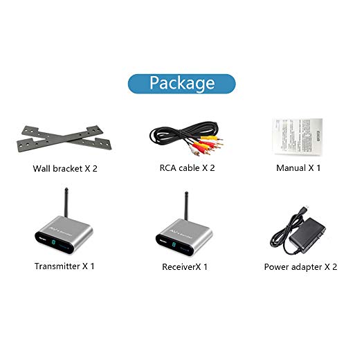 【Built-in 2.4G wifi ,transmit point to point 】Wireless rca transittre receiver supports 2.4 GHz ISM frequency band. The transmitter and the receiver can be used in the modes of point-to-multipoint. The built-in 2.4G wifi make the sender and the receiver connect , no need local wifi network to work . 2.4GHZ high frequency transmission scheme,clear and stable picture quality,clear and noiseless sound quality, easier to pass through obstacles.