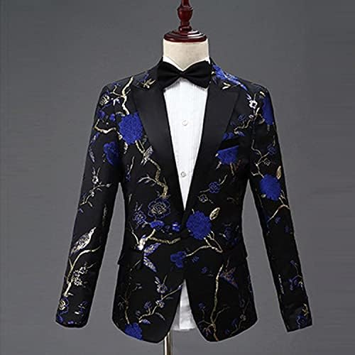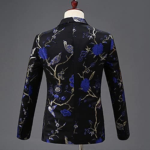 Mens 2 Piece Floral Dress Suit One Button Dinner Tuxedo Jacket & Pants Notched Lapel Coat Floral Performance Suit