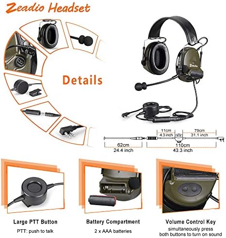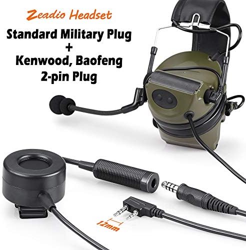 Military Automatically Noise Cancelling Overhead Headset Earpiece with Round PTT for 2 PIN Kenwood Baofeng PUXING QUANSHENG WEIERWEI WOUXUN HYT Radio etc.
