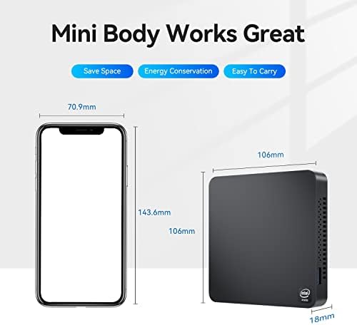 ????【Slim and stylish design but versatile】 This Mini PC Windows 10 Pro is compactly designed, measuring only 4.17 x 4.17 x 0.7 inches, weighing only 0.51 pounds, and has many useful ports: 4 x USB3.0, 1 x DC Jack, 1 x RJ45 1000M , 2 x HDMI and 1 x Audio Jack (HP&MIC). It has all the functions of a normal desktop computer, and can be used with TVs, servers, monitoring equipment, office equipment, monitors, projectors, etc.