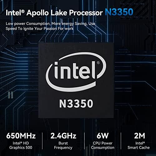 Mini PC Windows 10 Pro Intel Celeron N3350(Up to 2.4GHz) Micro PC, Mini Desktop PC 4G LPDDR3 64GB eMMC, Micro Computer Supports 2 * 4K HDMI, 4*USB 3.0, 2.4G/5G Wi-Fi 5, BT 4.0, Business Computer