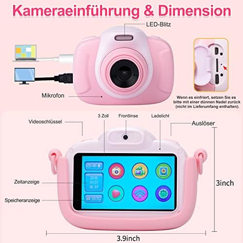 Multifunctional camera for children: this children’s camera comes with 20 fun images, built-in time lapse recordings, burst recordings, flash recordings, date setting, auto-off, etc. The children’s camera is configured in 14 languages, in the settings you can choose between German, English, French, Italian, Spanish, Dutch, Portuguese. It would be a great gift for children to learn the principles of photography and record their happy childhood.