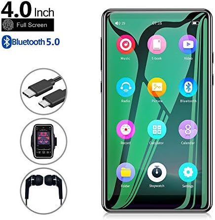 Mp3 player with bluetooth 5.0,Tengsen 4.0 inch Full TouchScreen HD Video Mp4 music Player with Speaker, 16GB Portable HiFi Sound with Bluetooth, FM Radio, Voice Recorder, E-book, Sport pedometer
