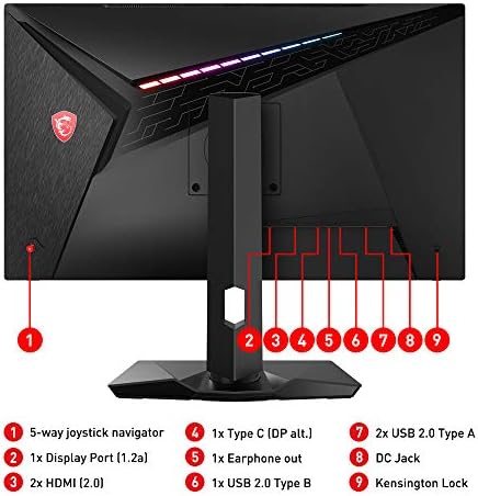 VERSATILE CONNECTIVITY – Video interface options include DisplayPort 1.2a & USB Type-C (WQHD/165Hz) as well as HDMI 2.0b ports (WQHD/144Hz); Other ports include USB 2.0 Type-A & -C, earphone out & 5-way joystick navigator