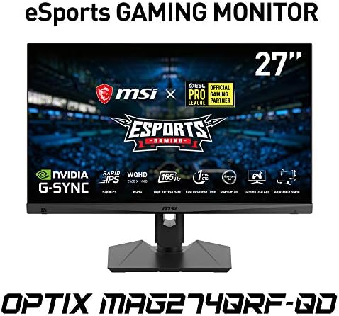 MSI Optix MAG274QRF-QD Esports Gaming IPS Monitor – 27 Inch, 16:9 WQHD (2560 x 1440), 2K, Rapid IPS, 165 Hz, 1ms GTG, G-SYNC Compatible, RGB, HDR, Quantum Dots, Adobe 99 Percent, Display Port, HDMI
