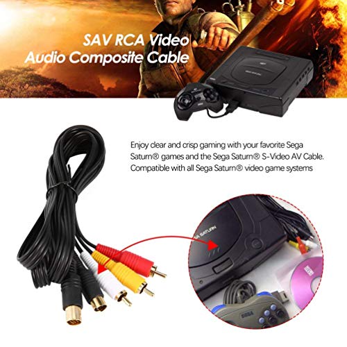 Multibao 1.8M Gold Plated S-AV Video Audio Composite TV Adapter Cable for Sega Saturn Black
