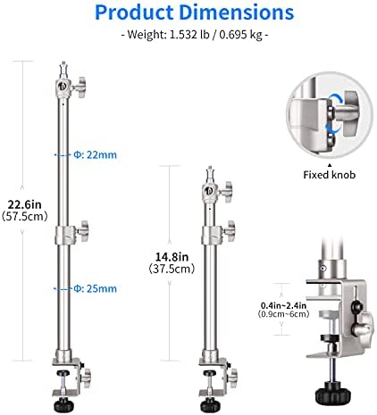 Neewer Desk Mount Stand, 14.8”–22.6” Adjustable Aluminum Alloy Tabletop C-Clamp Mount Stand with 1/4” to 3/8” Adapter for Ring Light/Video Light/Panel Light/DSLR Camera, Max Load: 6.6lb (Silver)