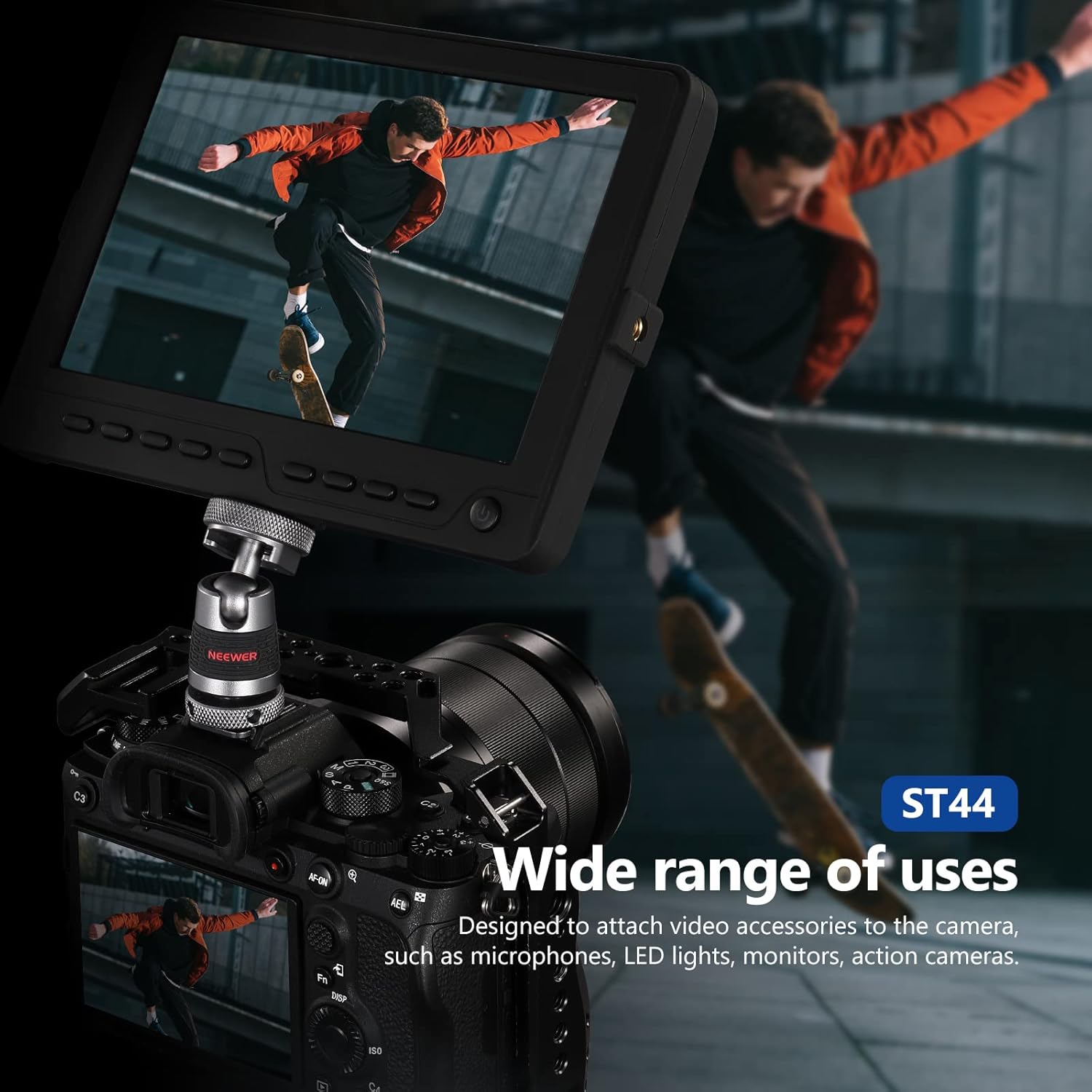 NEEWER Mini Ball Head with Removable Cold Shoe Mount and 1/4” Screw, Detachable Cold Shoe Base, 2-Way Installation 360° Tripod Mount for DSLR Camera, Field Monitor & LED Video Light – ST44