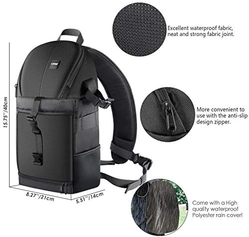 Neewer Professional Sling Camera Storage Bag Durable Waterproof and Tear Proof Black Carrying Backpack Case for DSLR Camera, Lens & Accessories (Purple Interior)