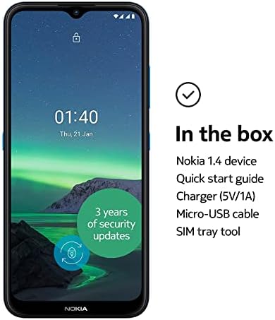 Nokia 1.4 6.51 Inch Android UK SIM Free Smartphone with 2 GB RAM and 32 GB Storage (Dual SIM) – Fjord (Renewed)