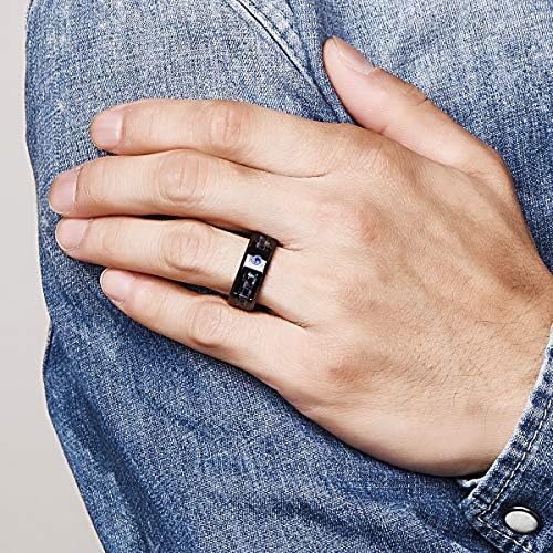 NUNCAD Men’s 8mm Blue Black Carbon Fiber Tungsten Carbide Ring Comfort Fit Wedding Band Size L½ to Z+3