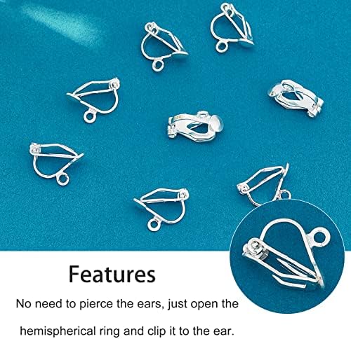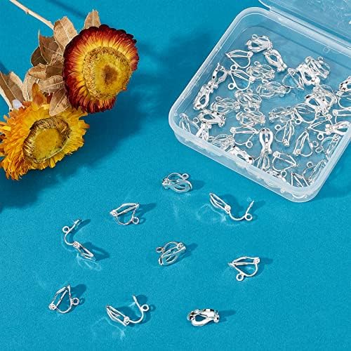 PandaHall Elite 50 pcs Brass Clip-on Earring Hooks Components Silver for Non-Pierced Ears,13x6x7mm