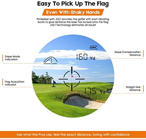 [Pin-Locking Technology]:You can quickly and accurately lock the pin within 300 yards and get vibration feedback after locking to ensure that you find the right target.It acquires the pin without needing a really steady hand for golfer &hunter.