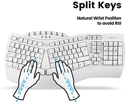 Perixx PERIBOARD-612 Wireless Ergonomic Split Keyboard with Dual Mode 2.4G and Bluetooth Features, Compatible with Windows 10 and Mac OS X System, White, QWERTY UK