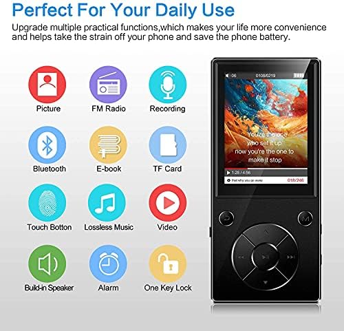 ????【2.4 Inch Color Screen】Equipped with a large 2.4 inch HD color screen, when you play e-book, the player provides vivid, clear HD images to enjoy the wonderful picture, so you can easily can read. ♫【HiFi Lossless Sound Quality】Professional intelligent digital noise reduction chip, which can shield noise and protect sound. The level of sampling restores the real sound,Supported audio formats:MP3 / WMA / OGG / APE / FLAC / WAV / AAC-LC /DRM/ ACELP. Enjoy immersive music.