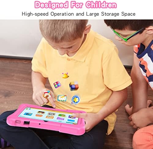 Pritom Kids Tablet 7 Inch Android 11, 2GB RAM 32GB ROM BT WiFi Dual Camera Educational Games Parental Control,Tablet for Children with case, Type C, Pink