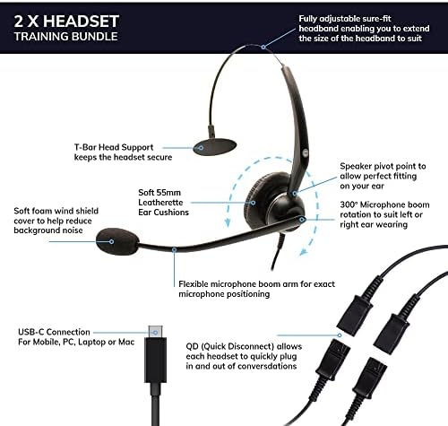 Monaural USB Training, Supervising and Coaching Headset Bundle For 2 Users | Compatible with MV-Business VoIP