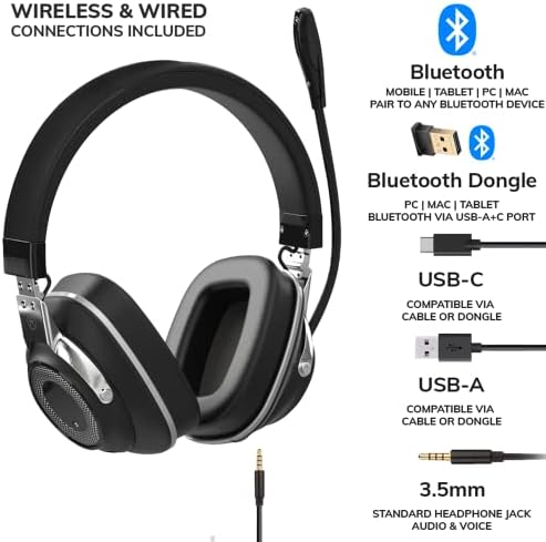 The Project Telecom Professional Binaural Active Noise Cancelling Wireless Bluetooth | USB Headset provides 3.5mm Jack, USB A & C and Bluetooth 5.0 connectivity.