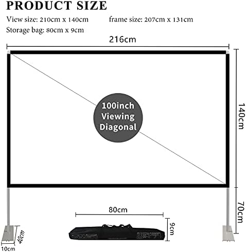 【Projector Screen Outdoor】 – 100inch projector screen and stand, 16:9 Ratio, 160° Wide Viewing Angle, the outdoor movie screen is designed for providing sharp and high-resolution images, enriched colors and supreme watching experience from different viewing position.
