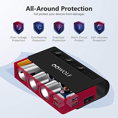 ►Multiple Safety Protection & Quality Material – Build-in PPTC auto-recovery 10A glass tube fuse and protective circuits prevent the car power splitter and your devices from overloading or short-circuiting. Certified by RoHS, CE & FCC, Made by Anti-scratch High-impact ABS and high-quality fire proof material. Free for extra two fuse.