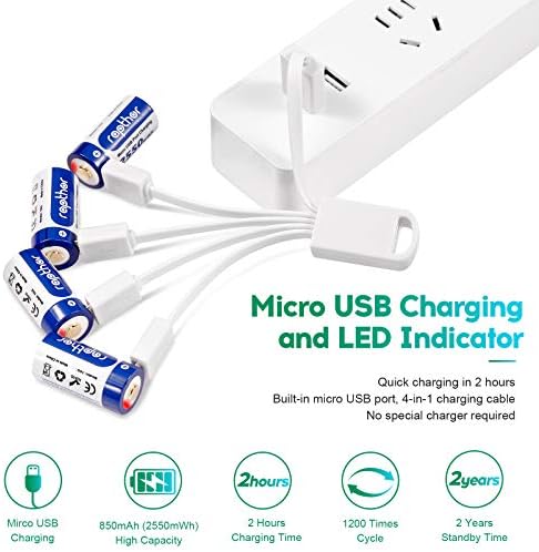 Unique design with a micro-USB port in the side of the battery, and come with batteries and 1 USB cable.
