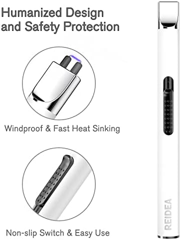 REIDEA USB Candle Lighter, Windproof Flameless Electronic Lighter with Safety Protector Button, Rechargeable lighter for Home Candle Outdoor Activities (White)