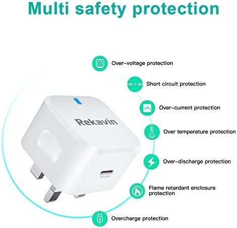 Rekavin 20W USB C Plug Charger UK Fast Charge for iPhone 13/13 Mini/13 Pro/13 Pro Max/12/12 Pro/12 Pro Max/12 Mini/SE 2020/11/11 Pro Max,iPad Air 4,Type C Wall Plug Power Adapter for Galaxy S21/S20