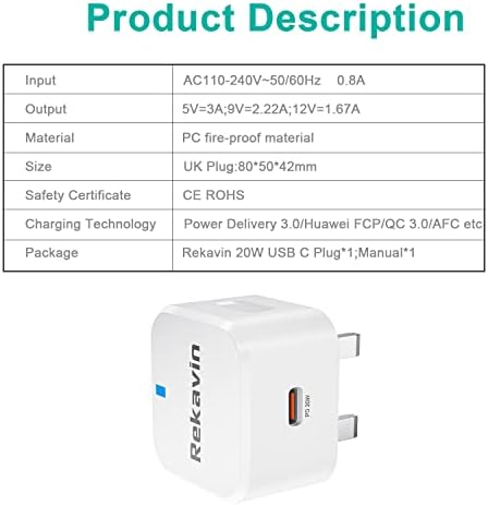 ⚡What you get:Rekavin 20W USB C Plug UK*1, Rekavin satisfactory after-sales service,If you have other questions, you can contact us at any time.We will reply and solve your question within 24 hours.
