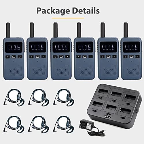 Retevis RB619 Walkie Talkie, PMR446, 1650mAh Rechargeable Walkie Talkies with 6 Way Charger, Diode Display VOX, Professional 2 Way Radio with Earpieces for Hotel, School (6 Pack, Navy Blue)