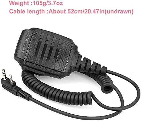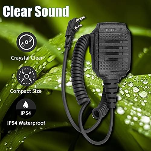 Retevis RS114 Two Way Radio Speaker Microphone, IP54 Waterproof 2 Pin Mic, Compatible with Walkie Talkie RT24 RT27 RT28 RT5 Baofeng BF-888S UV-5R Kenwood WOUXUN TYT HYT (1 Pcs)