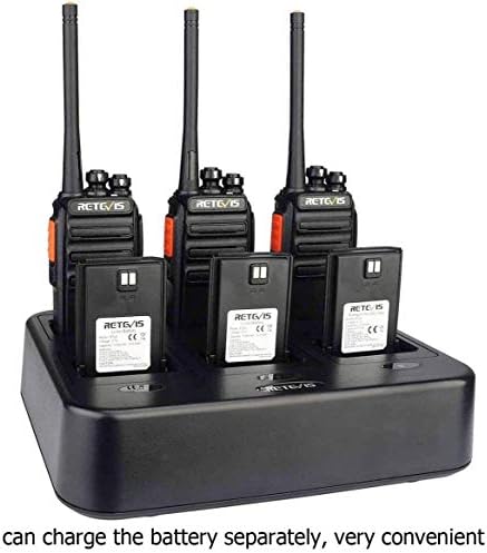 Walkie talkie with six-way charger; charge 6 RT24 two way radio simultaneously which can save time and space; fast charging with multiple safety protection; safe and reliable