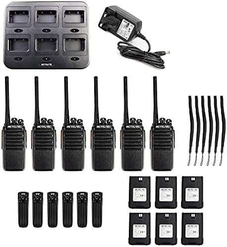 Retevis RT24 Walkie Talkie, Two Way Radio Rechargeable with 6 Way Charger, PMR446 License-free,16 Channels, CTCSS/DCS, VOX, 2 Way Radio for School, Security, Business(6 Pack, Black)