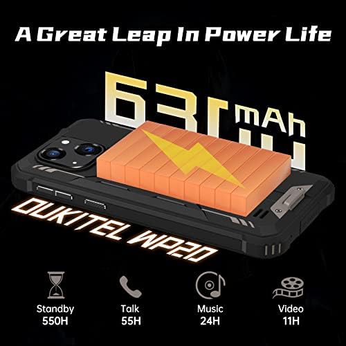 [6300mAh Huge Battery] SIM Free rugged smartphone OUKITEL WP20 with 6300mAh battery,Using time sustainable 550 hours standby,it can free yourself from frequent charging to resolve your battery anxiety.This rugged phone also support OTG function,Android 12 OUKITEL WP20 phones with 6300mAh battery can also act as a power bank, can charge for other smartphones!