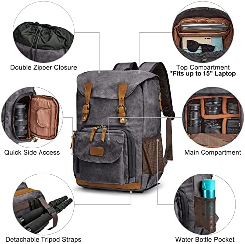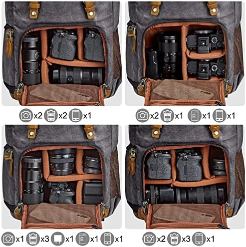S-ZONE Camera Backpack Canvas SLR DSLR Camera Bag Large Capacity Front Open Waterproof Anti-Shock Camera Rucksack Camera Travel Bag Professional Camera Lens Organizer