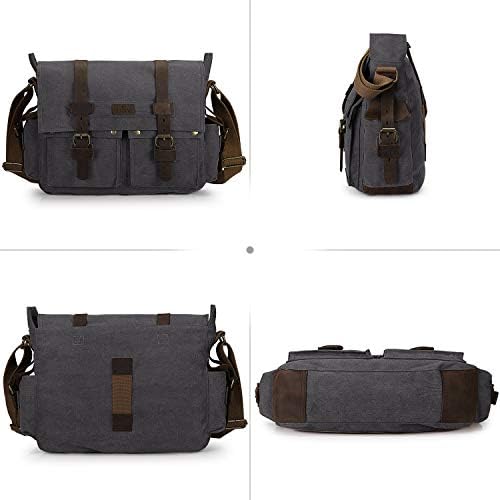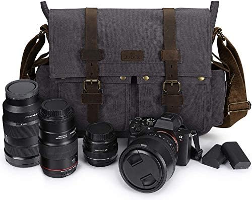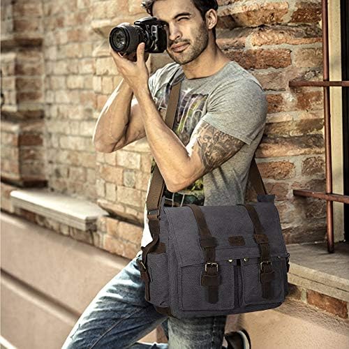 S-ZONE Vintage Canvas Leather Trim DSLR SLR Digital Camera Exchangeable Shoulder Large Messenger Bag Bookbag Removal Cotton Lining Laptop Bag